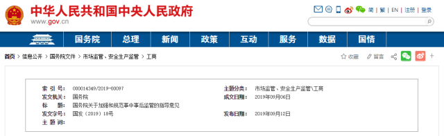 国务院印发《关于加强和规范事中事后监管的指导意见》推动行业协会商会规范自律 提升行业自治水平2019-09-16 -