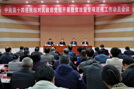 中央第十四巡视组对民政部党组开展脱贫攻坚专项巡视工作动员会召开根据中央关于巡视工作的统一部署,2018年10月18日上午,中央第十四巡视组对民政部党组开展脱贫攻坚专项巡视工作动员会召开。会前,中央巡视组向民政部党组书记黄树贤传达了习近平总书记关于巡视工作的重要指示精神,通报了有关工作安排。2018-10-22 -