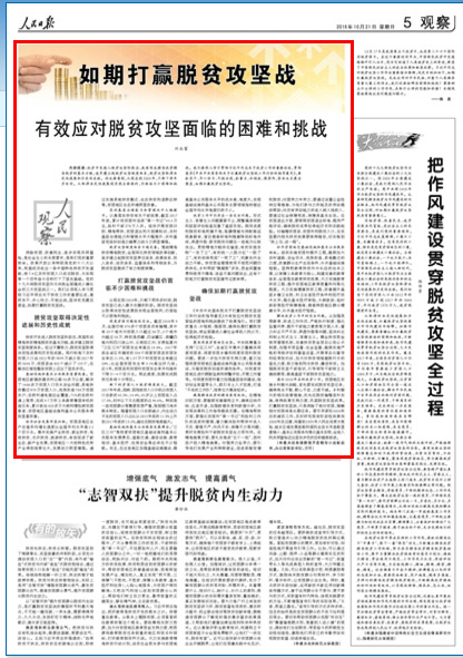 国务院扶贫办主任撰文:有效应对脱贫攻坚面临的困难和挑战中国特色扶贫开发道路格外引人注目,因为它创造了人类减贫史上的奇迹,彰显了中国特色社会主义的政治优势和制度优势。习近平同志对脱贫攻坚工作作出重要指示强调,咬定目标加油干,如期打赢脱贫攻坚战。完成这项对中华民族、对整个人类都具有重大意义的伟业,我们还面临哪些困难和挑战?需要树立什么样的工作作风、采取什么样的思路和举措?本期观察版围绕这些问题进行探讨。2018-10-21 -